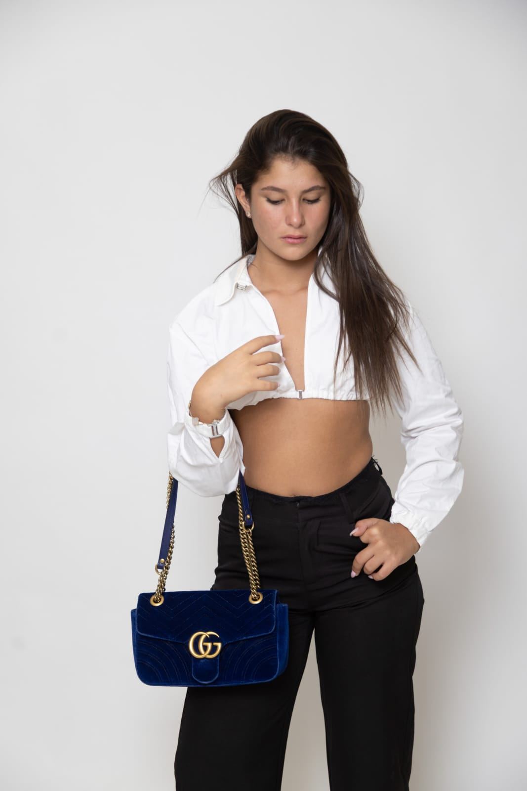 תיק גוצ'י GG Marmont קטן קטיפה כחול מס' סידורי 493075 443497